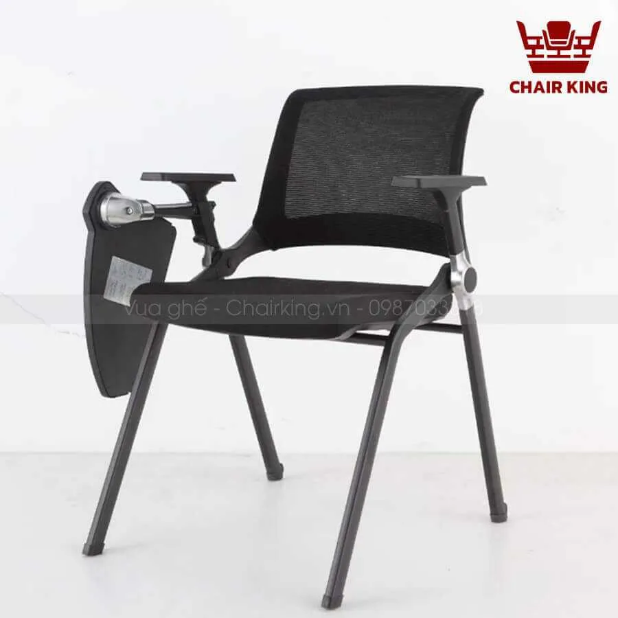 | Kiểu dáng | Thiết kế hiện đại, tiện dụng hợp với dáng người sử dụng, đáp ứng nhu cầu làm việc trong văn phòng, phòng đào tạo hoặc những cuộc họp, hội thảo kéo dài nhưng không gây mỏi lưng. Thiết kế tay vịn hiện đại tăng tính thẩm mỹ, giúp người ngồi thoải mái hơn. Ghế kèm bàn thông minh tiện dụng, giúp người ngồi có thể ghi chép dễ dàng. |