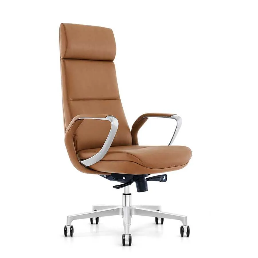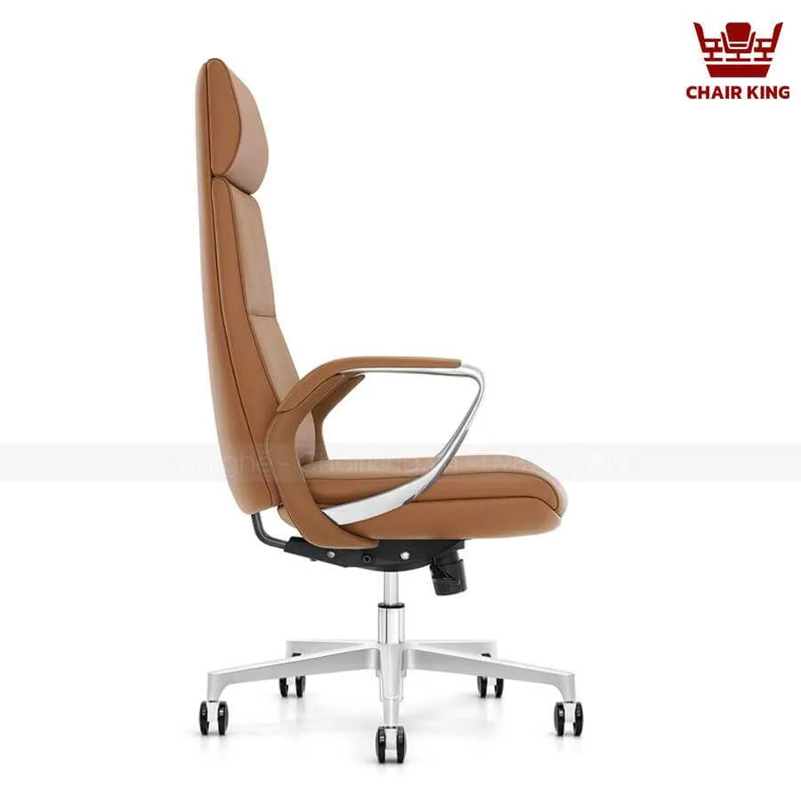 Điểm nổi bật nhất của ghế là lớp bọc da bò thật cao cấp. Da bò không chỉ mang lại cảm giác mềm mại, êm ái mà còn có độ bền vượt trội, chống thấm và dễ dàng vệ sinh. Đây là lựa chọn lý tưởng cho những không gian văn phòng cao cấp, nơi mọi chi tiết đều được chú trọng để thể hiện sự hoàn mỹ.