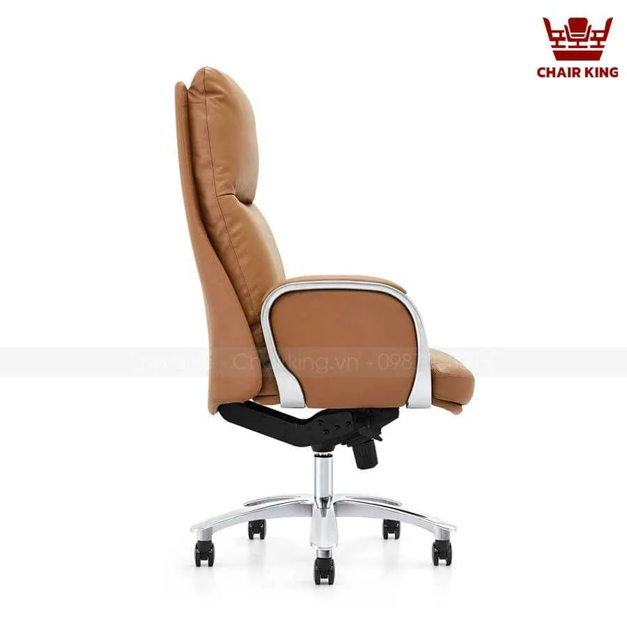 Phần đầu ghế được thiết kế cao, tạo sự nâng đỡ tuyệt vời cho cổ và vai gáy, giúp người dùng có thể ngả lưng thư giãn ngay tại văn phòng sau những giờ làm việc căng thẳng. Thiết kế này không chỉ mang lại sự tiện nghi mà còn thể hiện phong thái sang trọng, quyền uy của người lãnh đạo.