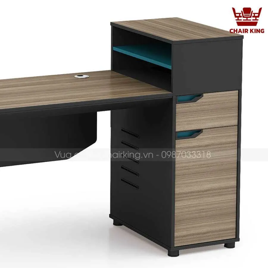Khung bàn bằng sắt sơn tĩnh điện với khả năng chống lại quá trình oxy hóa, ăn mòn từ các tác nhân bên ngoài môi trường hiệu quả, cho sự bền bỉ vượt trội với thời gian. Tủ phụ thiết kế cao, được chia thành nhiều ngăn mở và đóng, giúp cho người dùng dễ dàng phân loại tài liệu, tiện lợi khi sử dụng.