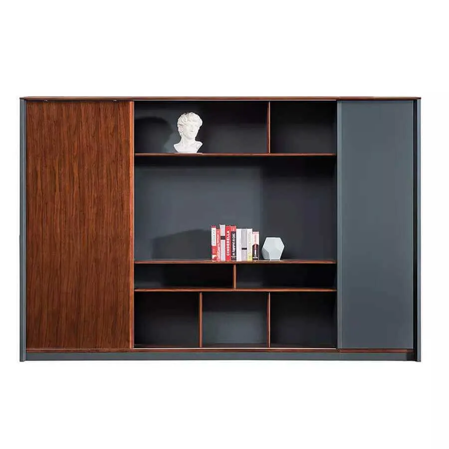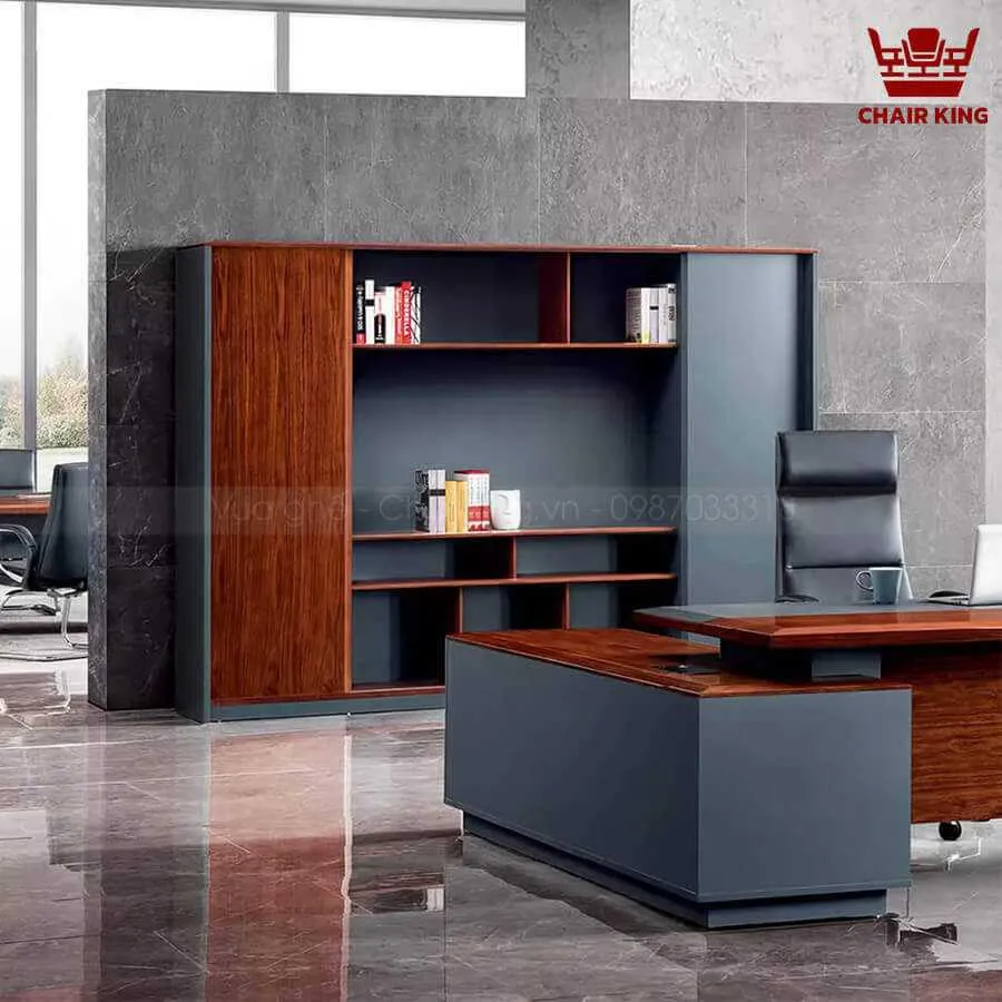 Phân chia thành nhiều ngăn gồm: ngăn kín đựng tài liệu, vừa có kệ đựng sách, đồ decor giúp văn phòng trở nên chuyên nghiệp.