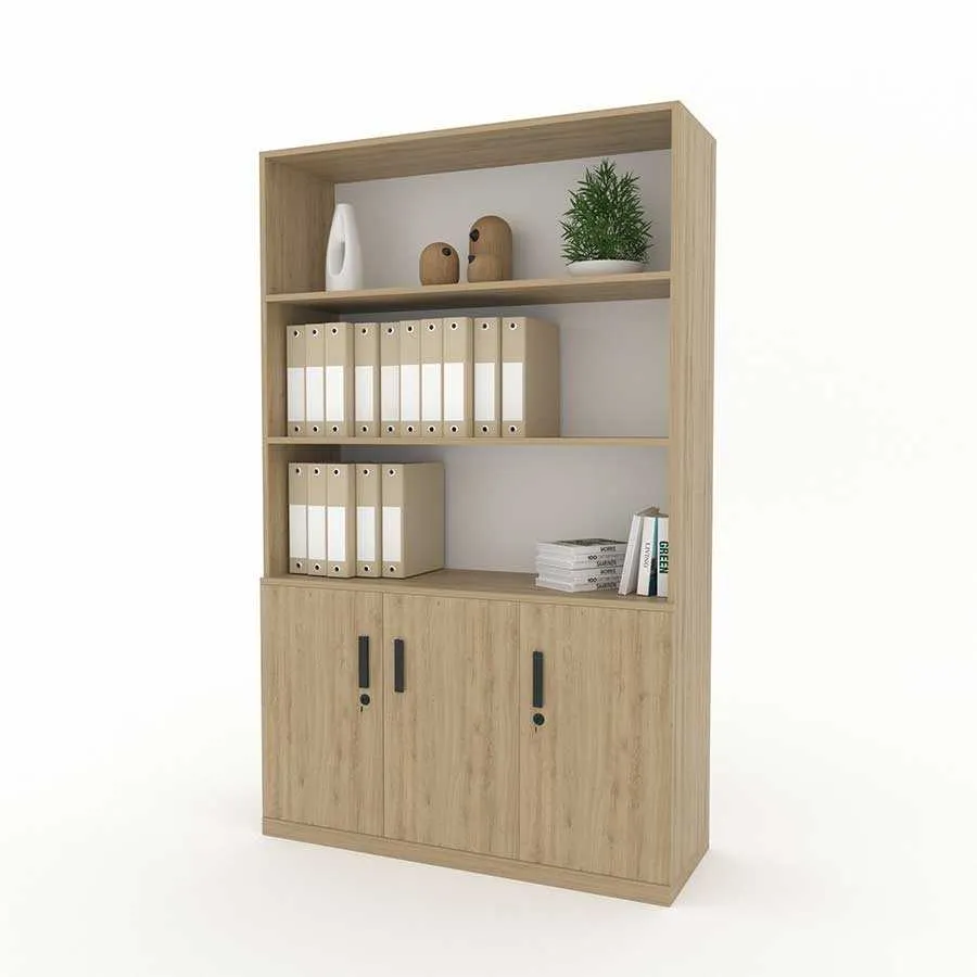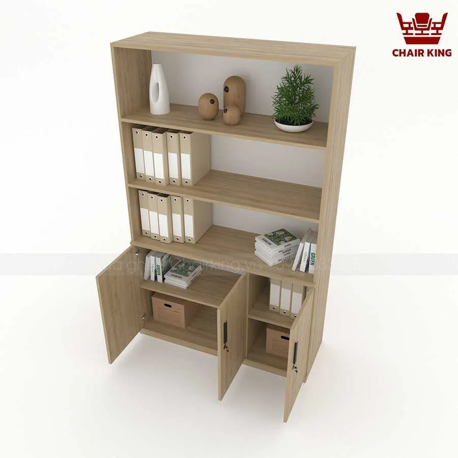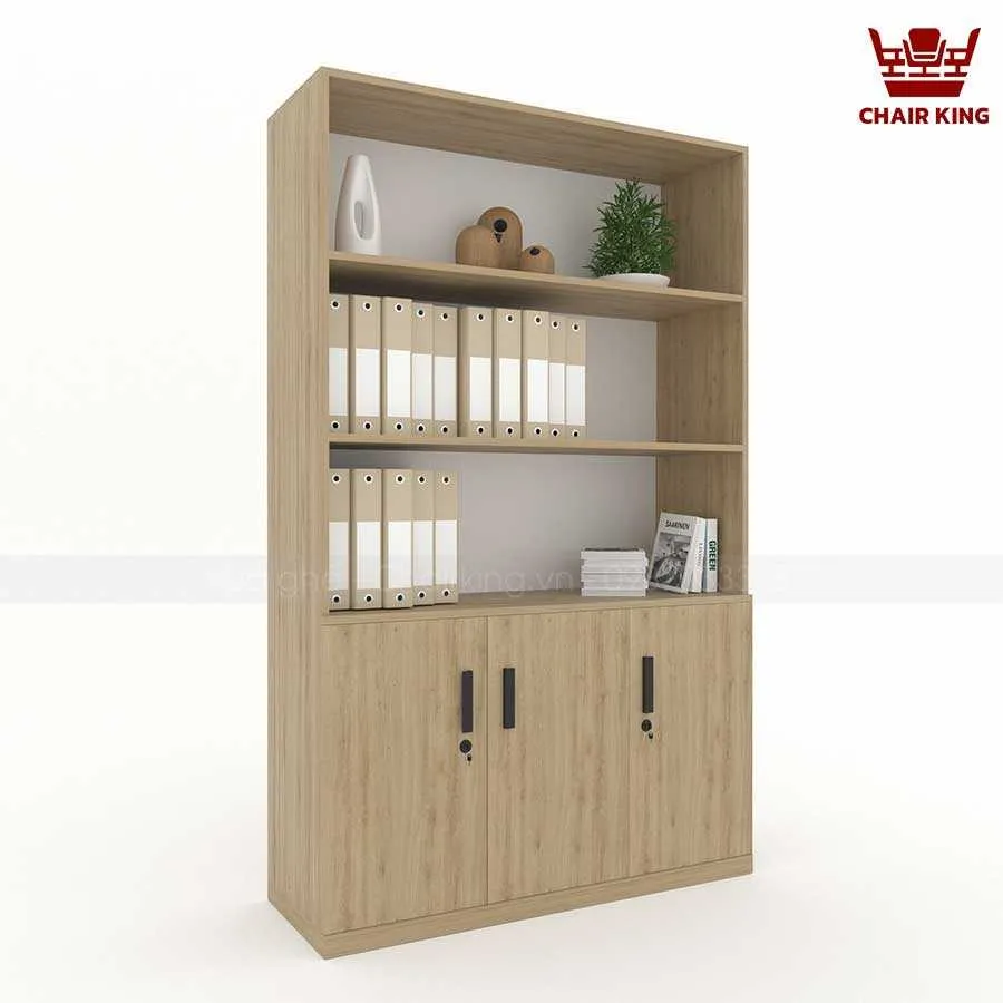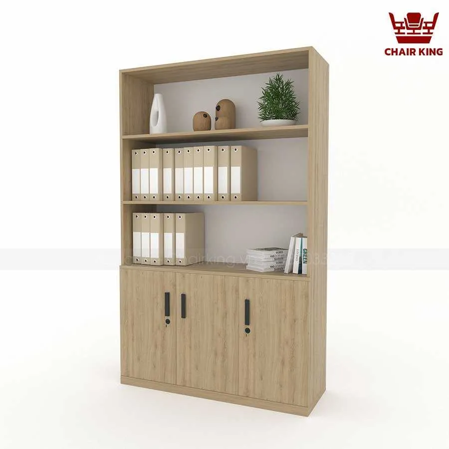 Phần trên của tủ gồm các kệ mở, giúp người dùng dễ dàng truy cập các tài liệu thường xuyên sử dụng, đồng thời có thể tận dụng để trang trí. Điều này không những tăng thêm tính thẩm mỹ mà còn giúp không gian văn phòng trở nên sinh động, sáng tạo hơn.