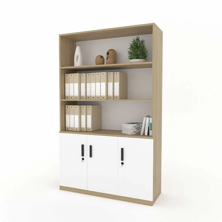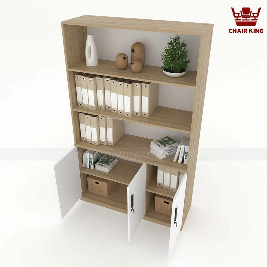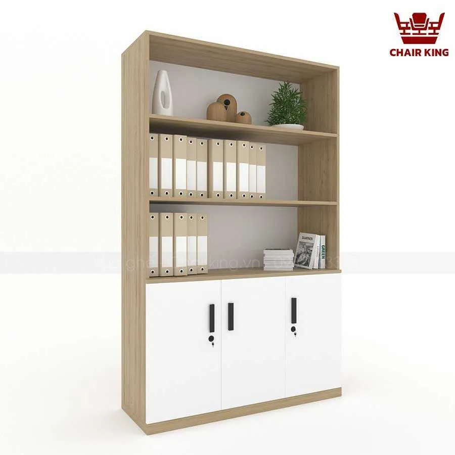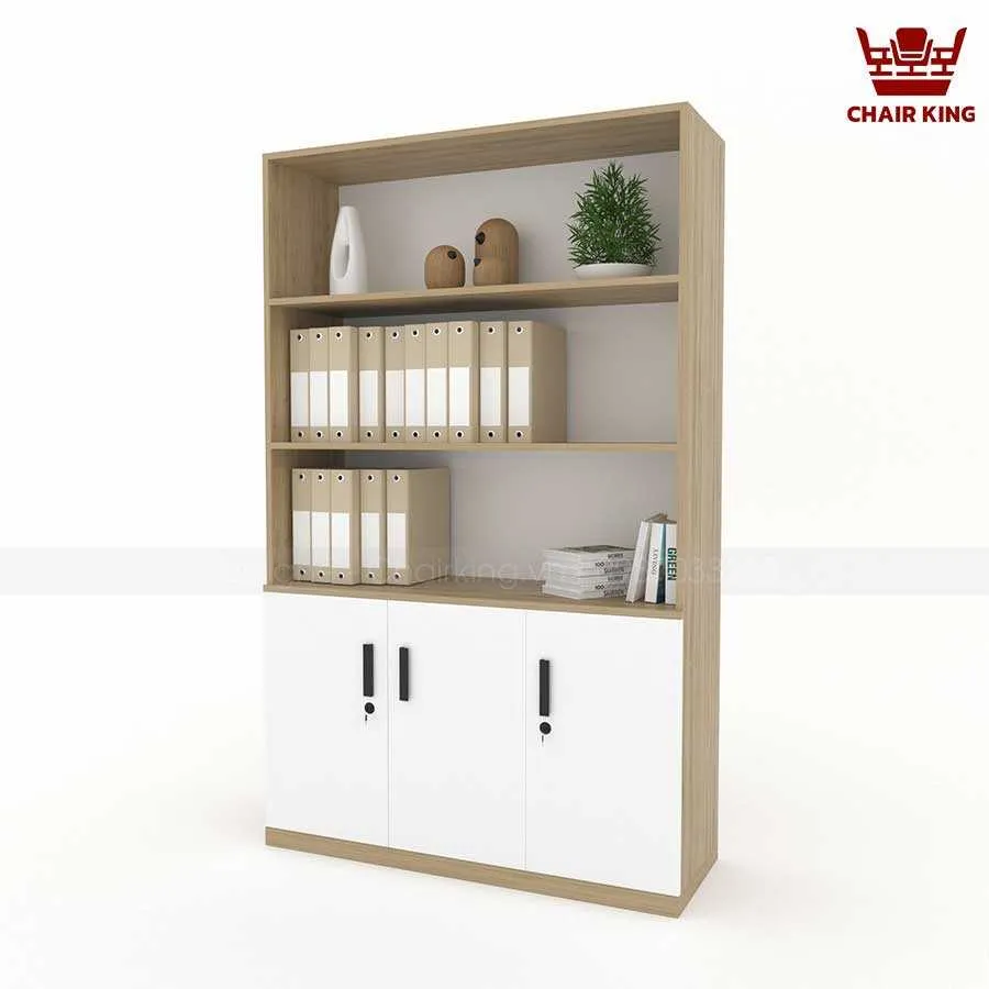 Phần trên của tủ gồm các kệ mở, giúp người dùng dễ dàng truy cập các tài liệu thường xuyên sử dụng, đồng thời có thể tận dụng để trang trí. Điều này không những tăng thêm tính thẩm mỹ mà còn giúp không gian văn phòng trở nên sinh động, sáng tạo hơn.