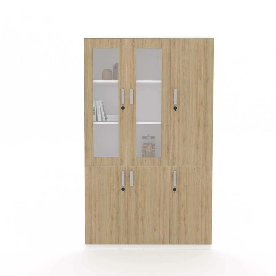 | Kiểu dáng | Tủ kiểu dáng hiện đại, đơn giản. Phía trên tủ được chia thành 3 khoang có cánh, bên trong có 2 đợt chia làm 3 ngăn thuận tiện cho việc để đồ trang trí và tài liệu. Phía dưới tủ có 3 cánh kín, bên trong có 1 đợt tủ chia làm 2 ngăn. Tủ có tay nắm cửa tiện dụng và khóa tủ để nâng cao tính bảo mật. |
