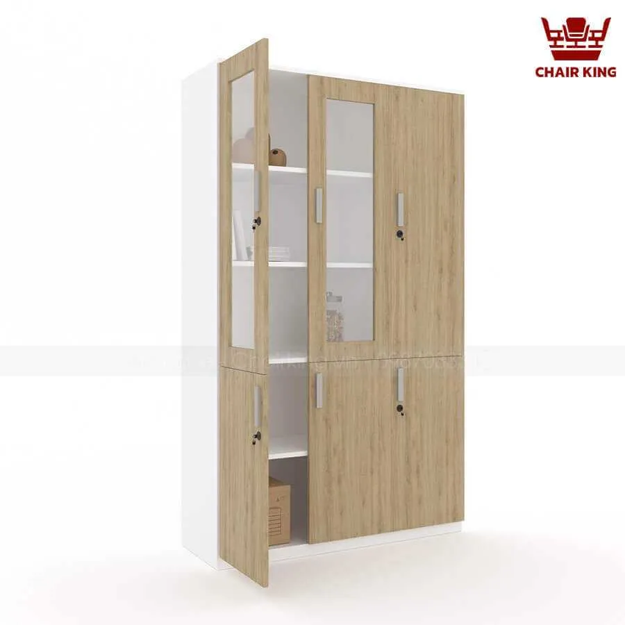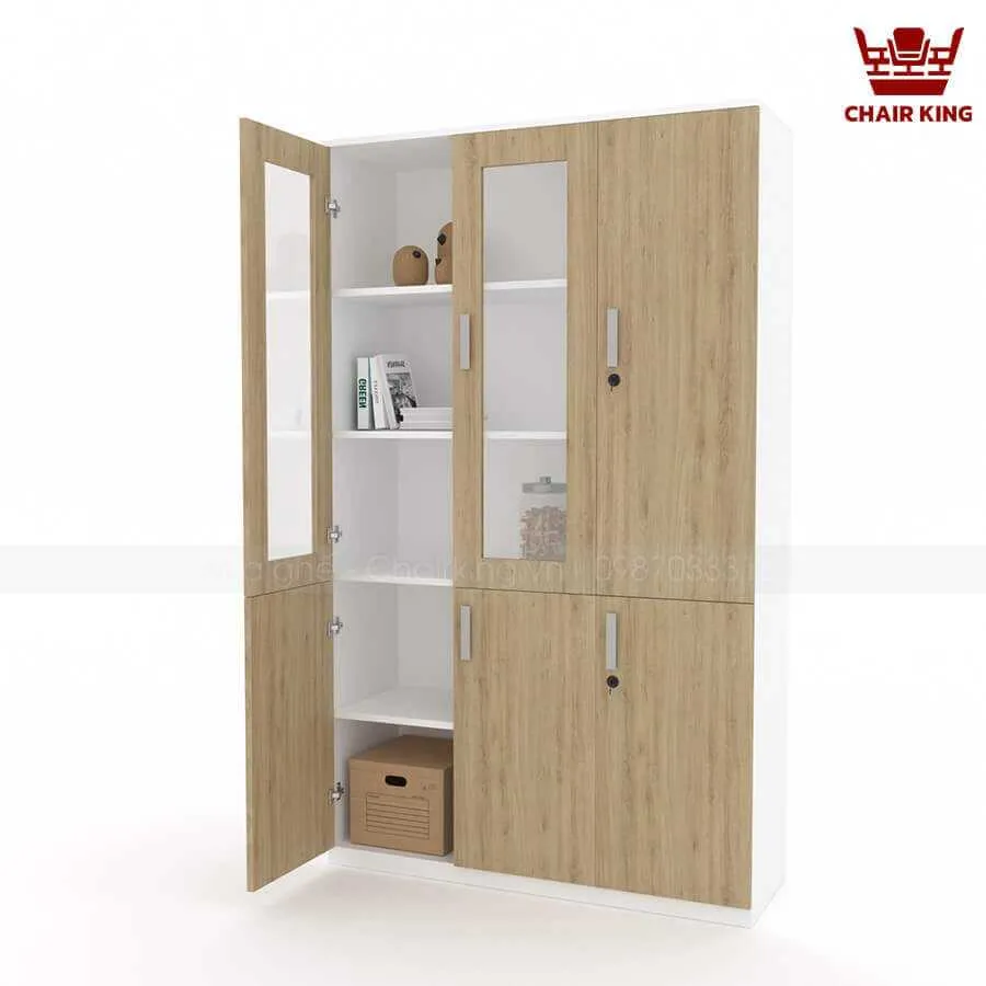 Phần trên của tủ 3 cánh trong đó có 2 cánh cửa kính giúp người dùng dễ dàng truy cập các tài liệu thường xuyên sử dụng, đồng thời có thể tận dụng để trang trí. Điều này không những tăng thêm tính thẩm mỹ mà còn giúp không gian văn phòng trở nên sinh động, sáng tạo hơn.