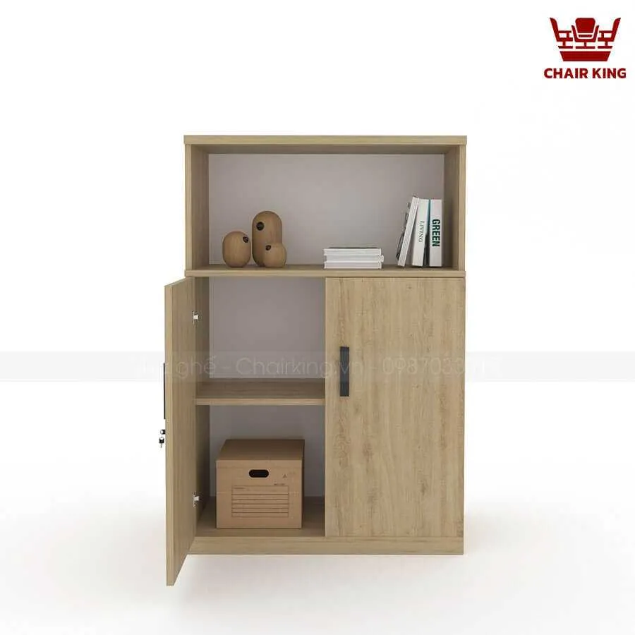 Tủ được chia thành 2 đợt với một đợt trên không có cánh đựng những đồ hay tài liệu thường dùng đến