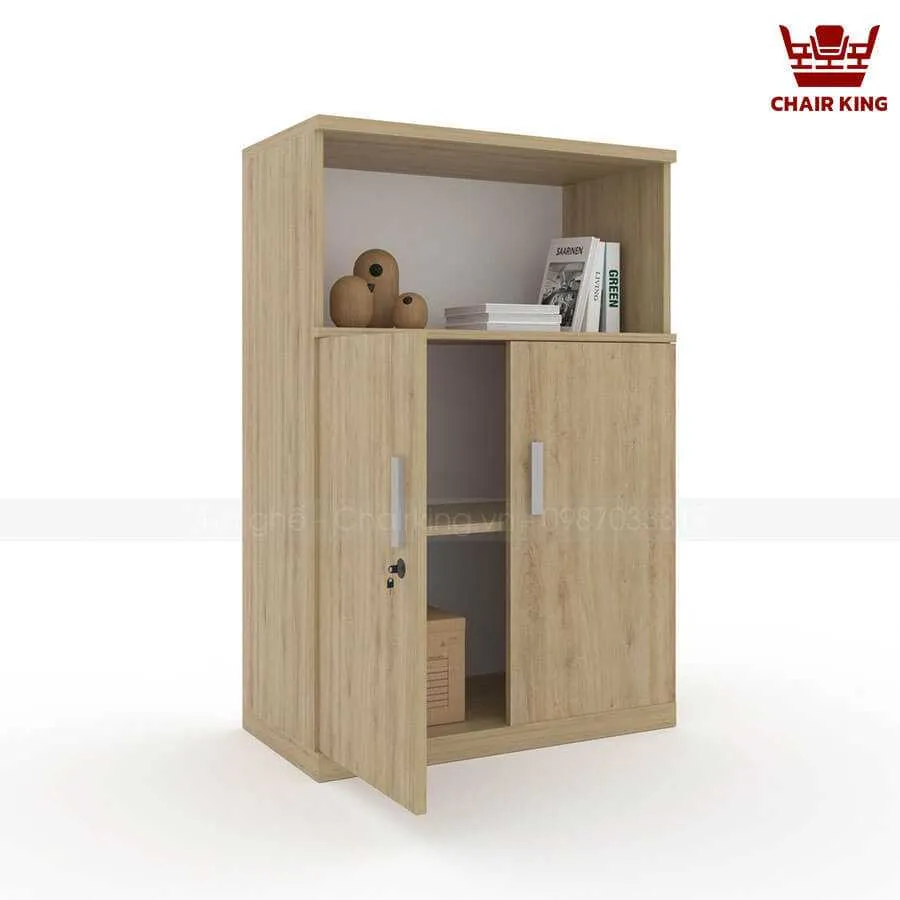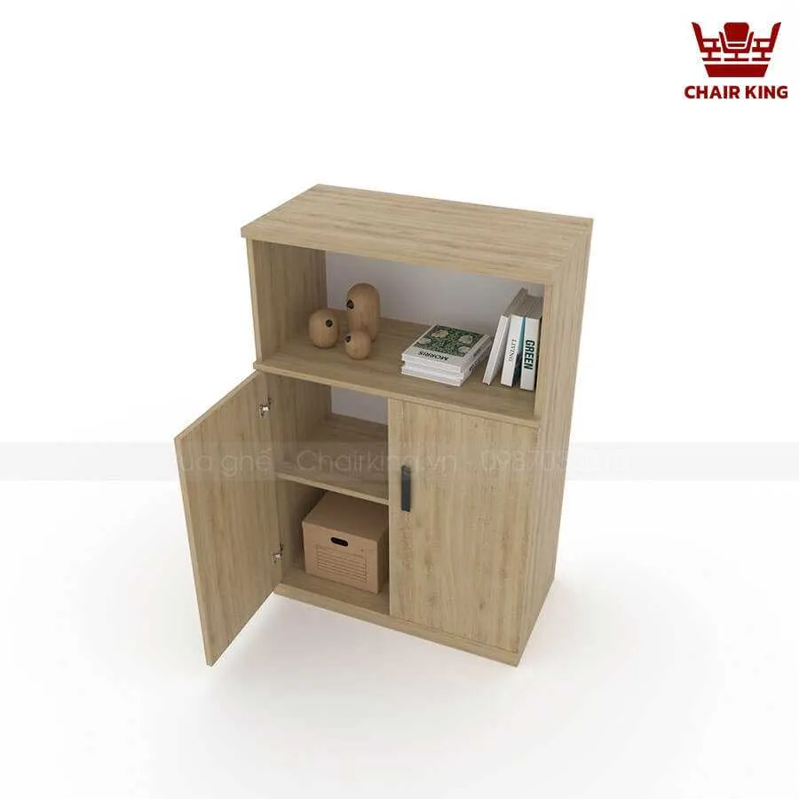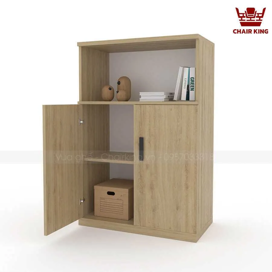 | Kiểu dáng | Tủ kiểu dáng hiện đại, đơn giản. Phía trên tủ được chia thành 1 ngăn mở, thuận tiện cho việc để đồ trang trí và tài liệu. Phía dưới tủ có 2 cánh kín, có tay nắm cửa tiện dụng và khóa tủ để nâng cao tính bảo mật. |