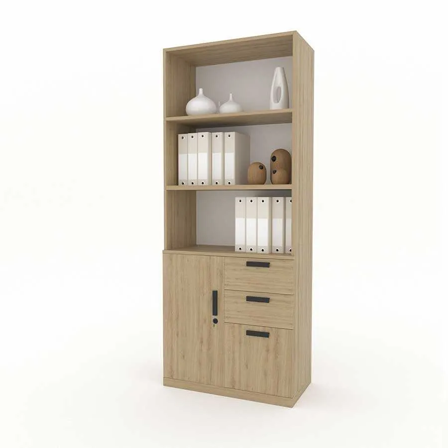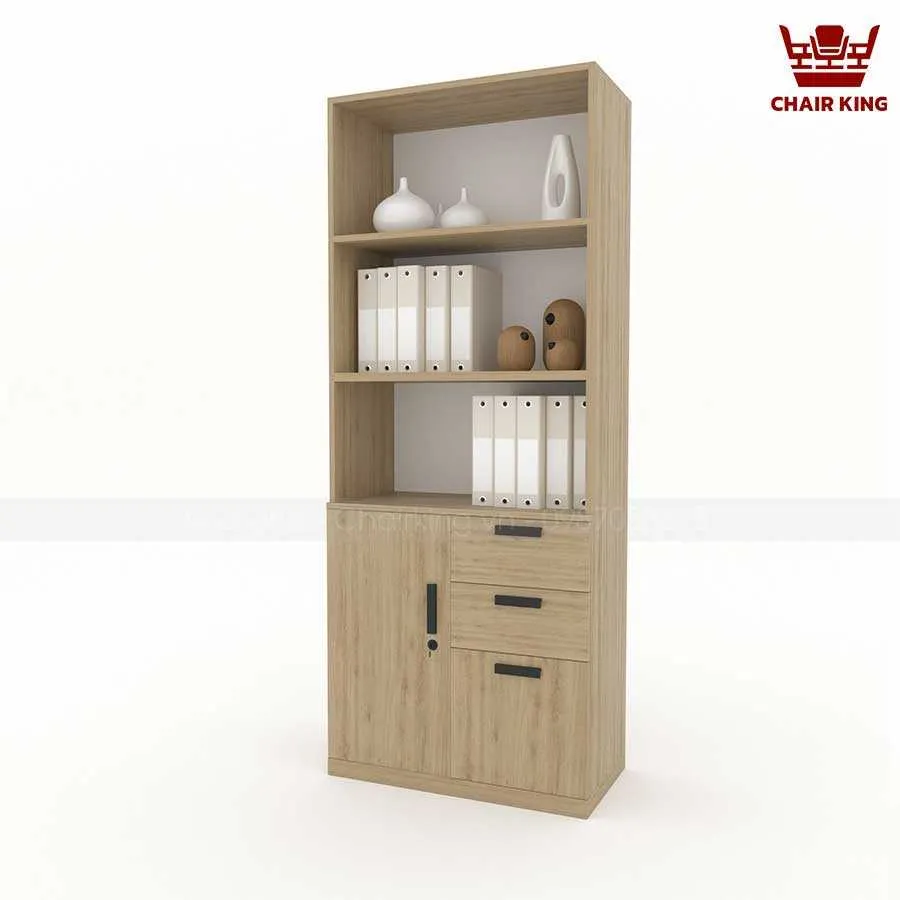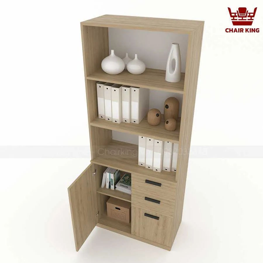 Phần trên của tủ gồm các kệ mở, giúp người dùng dễ dàng truy cập các tài liệu thường xuyên sử dụng, đồng thời có thể tận dụng để trang trí. Điều này không những tăng thêm tính thẩm mỹ mà còn giúp không gian văn phòng trở nên sinh động, sáng tạo hơn.