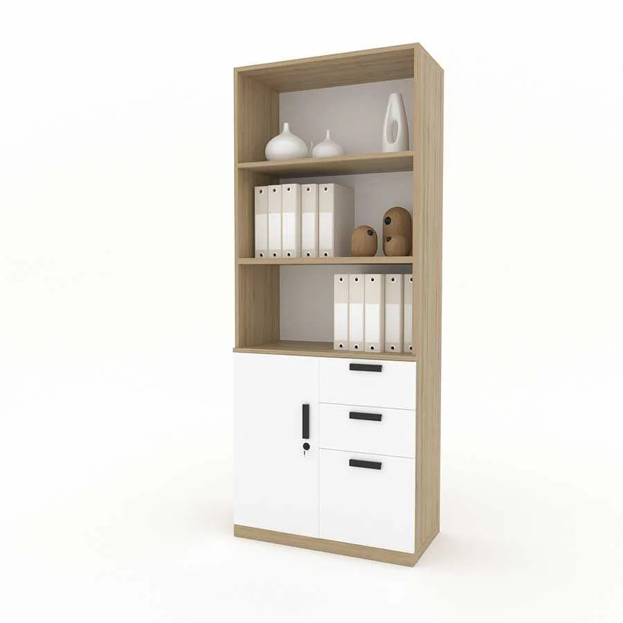 Phần trên của tủ gồm các kệ mở, giúp người dùng dễ dàng truy cập các tài liệu thường xuyên sử dụng, đồng thời có thể tận dụng để trang trí. Điều này không những tăng thêm tính thẩm mỹ mà còn giúp không gian văn phòng trở nên sinh động, sáng tạo hơn.