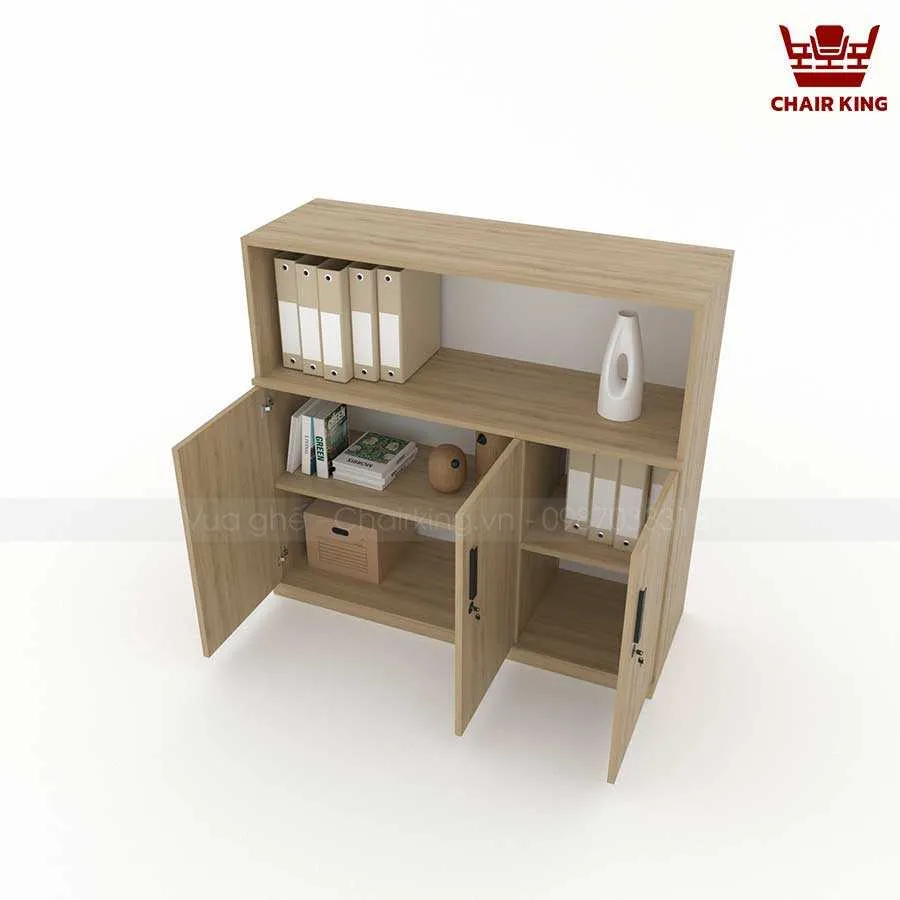 Phần trên của tủ gồm các kệ mở, giúp người dùng dễ dàng truy cập các tài liệu thường xuyên sử dụng, đồng thời có thể tận dụng để trang trí. Điều này không những tăng thêm tính thẩm mỹ mà còn giúp không gian văn phòng trở nên sinh động, sáng tạo hơn.