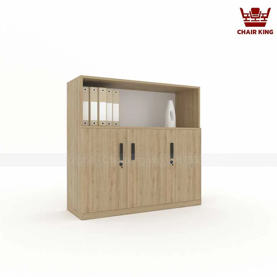 | Kiểu dáng | Tủ kiểu dáng hiện đại, đơn giản. Phía trên tủ được chia thành 1 ngăn mở, thuận tiện cho việc để đồ trang trí và tài liệu. Phía dưới tủ có 3 cánh kín, có tay nắm cửa tiện dụng và khóa tủ để nâng cao tính bảo mật. |