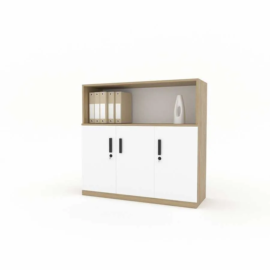 | Kiểu dáng | Tủ kiểu dáng hiện đại, đơn giản. Phía trên tủ được chia thành 1 ngăn mở, thuận tiện cho việc để đồ trang trí và tài liệu. Phía dưới tủ có 3 cánh kín, có tay nắm cửa tiện dụng và khóa tủ để nâng cao tính bảo mật. |