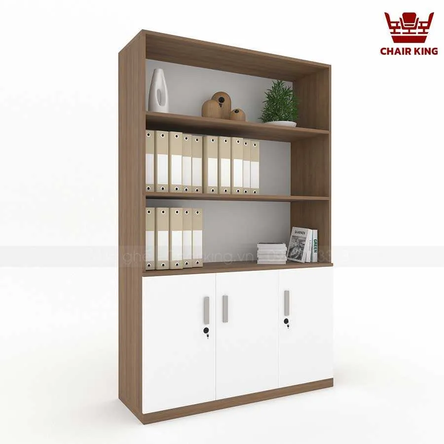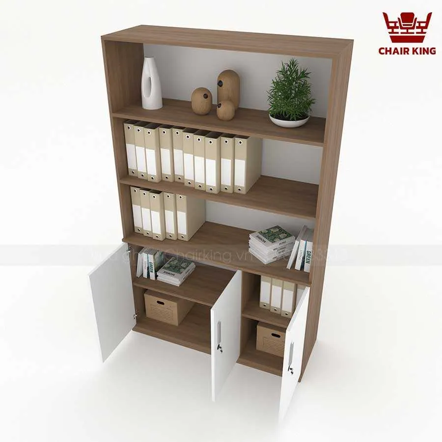 Phần trên của tủ gồm các kệ mở, giúp người dùng dễ dàng truy cập các tài liệu thường xuyên sử dụng, đồng thời có thể tận dụng để trang trí. Điều này không những tăng thêm tính thẩm mỹ mà còn giúp không gian văn phòng trở nên sinh động, sáng tạo hơn.