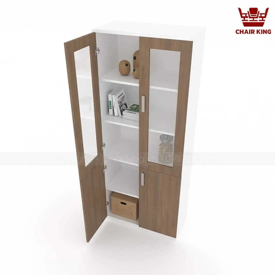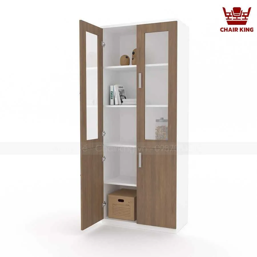 Phần trên của tủ 2 cánh trong đó có 2 cánh cửa kính giúp người dùng dễ dàng truy cập các tài liệu thường xuyên sử dụng, đồng thời có thể tận dụng để trang trí. Điều này không những tăng thêm tính thẩm mỹ mà còn giúp không gian văn phòng trở nên sinh động, sáng tạo hơn.