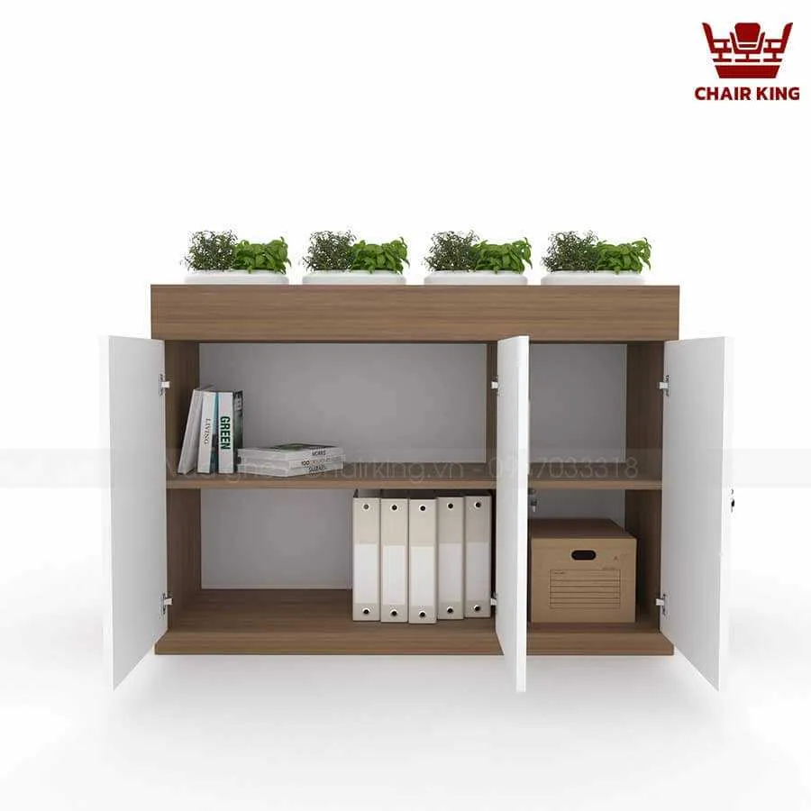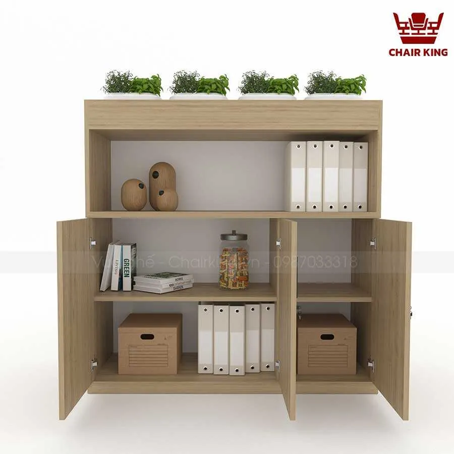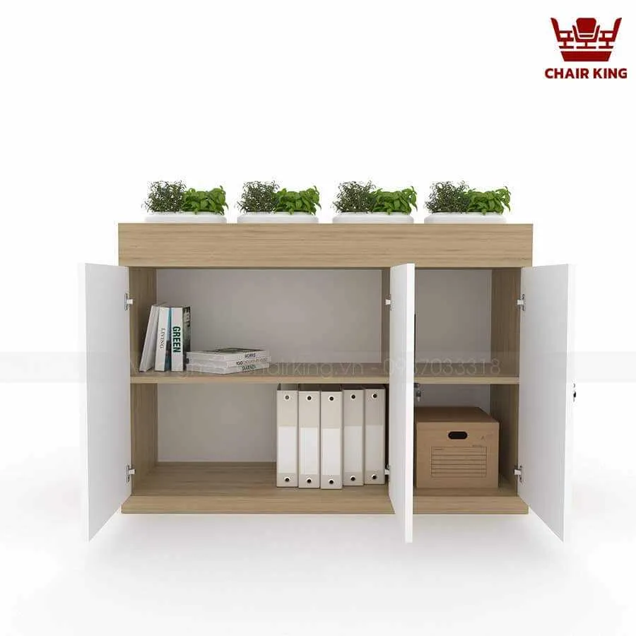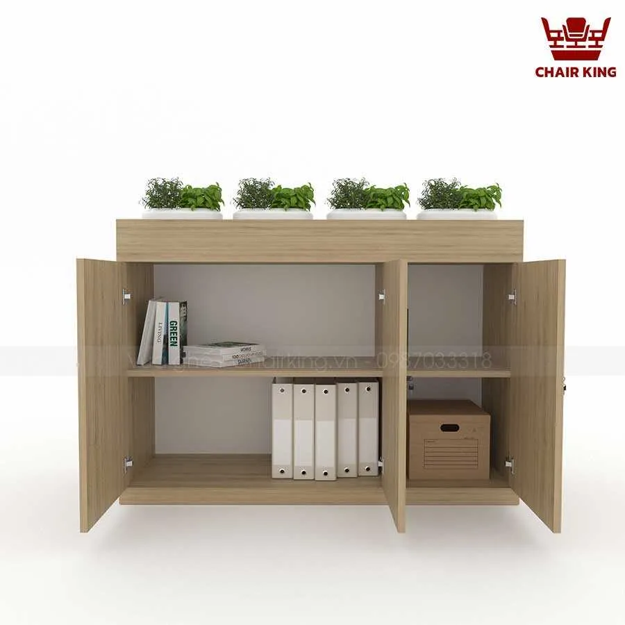 Tủ cây tại Vua ghế Chairking có cấu trúc linh hoạt, dễ dàng bố trí cây hoặc thay đổi công năng. Phần tủ được chia ngăn rõ ràng để đựng sách, tài liệu hoặc đồ dùng cá nhân. Phía trên hoặc bên hông tủ có ô trồng cây gắn liền.