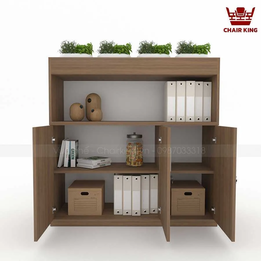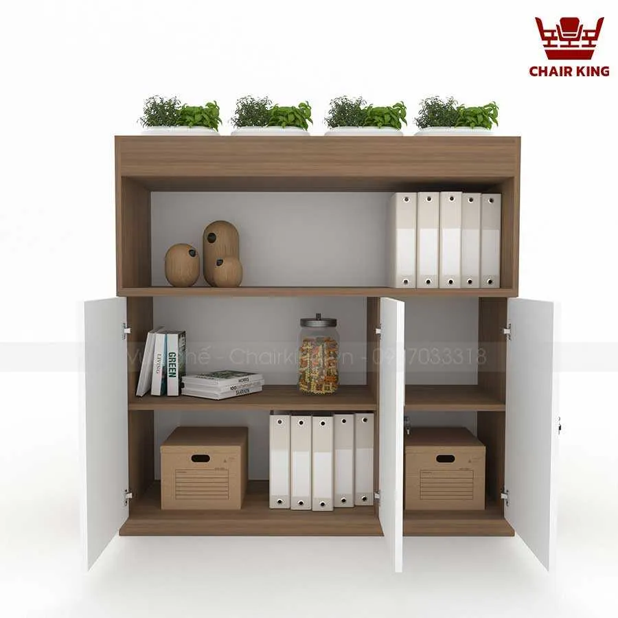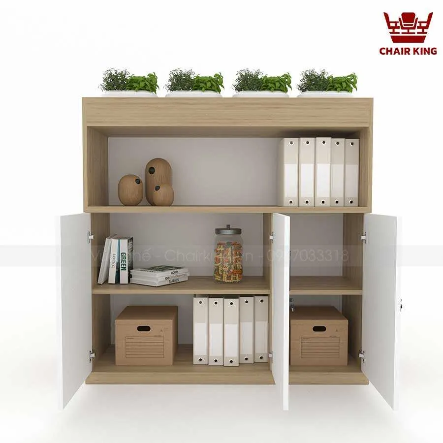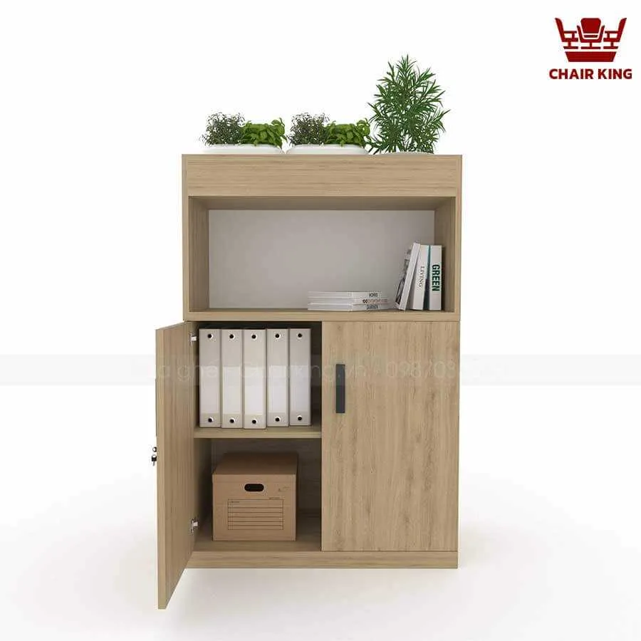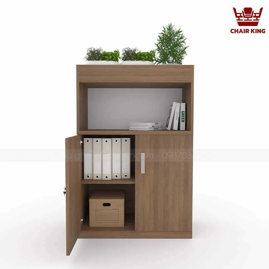 Tủ cây tại Vua ghế Chairking có cấu trúc linh hoạt, dễ dàng bố trí cây hoặc thay đổi công năng. Phần tủ được chia ngăn rõ ràng để đựng sách, tài liệu hoặc đồ dùng cá nhân. Phía trên hoặc bên hông tủ có ô trồng cây gắn liền.
